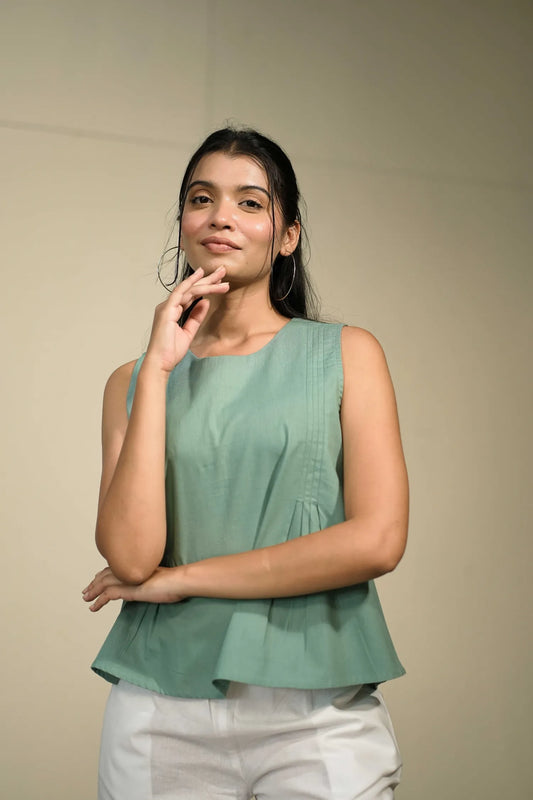 Green Handloom Cotton Sleeveless Top