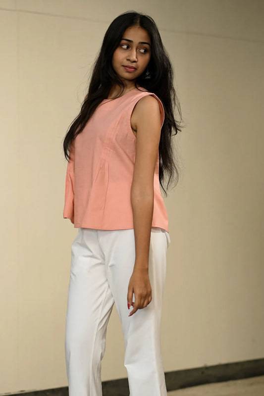 Peach Handloom Cotton Sleeveless Top