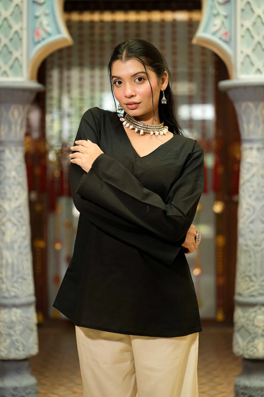 Women’s Black Solid Long Sleeve Kurti