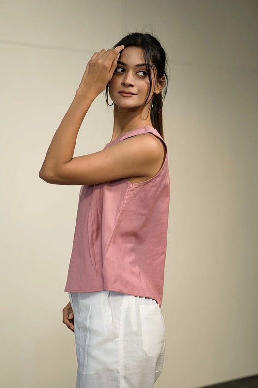 Pink Handloom Cotton Sleeveless Top